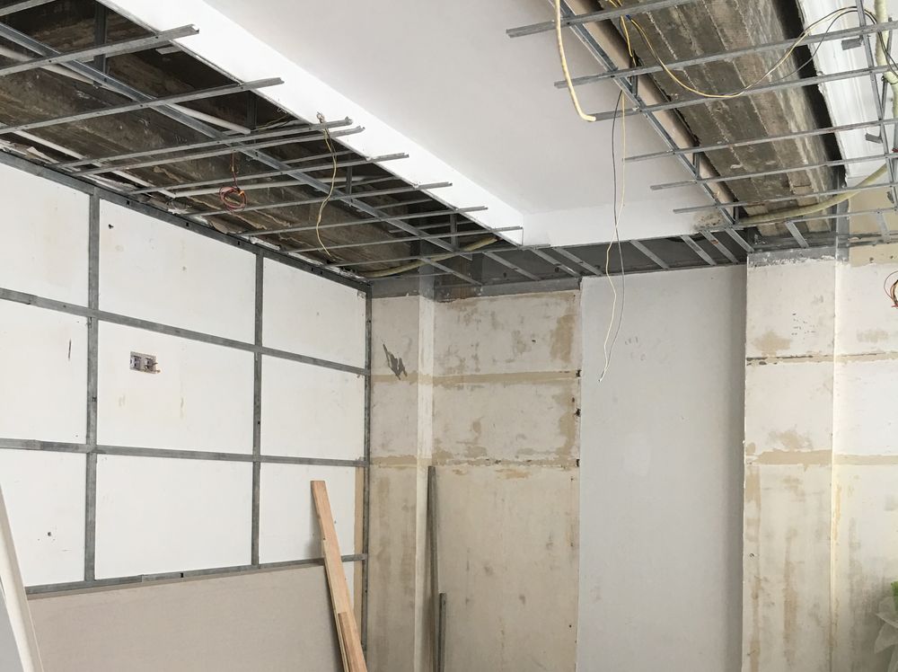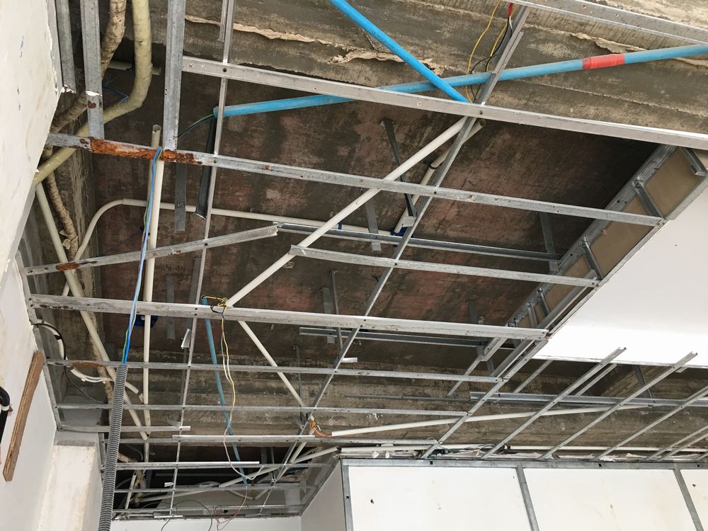 早速解体工事から着手し、天井.壁をはがして電気配線や給排水、空調の配管ルートなどルートの確認を始めました。日本の建築のように詳細な図面が残っている訳ではありませんので、とても重要な作業になります。